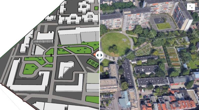 De groep van Sigge Kal, Skip Eversen en Sim ten Holt heeft gekozen om de fase van ruimtelijke analyse visueel te maken door middel van een verschuifbare kaart: deels zelf gemaakt in SketchUp en deels geleend van Googlemaps en dat in vormgegeven in ArcGIS StoryMaps.