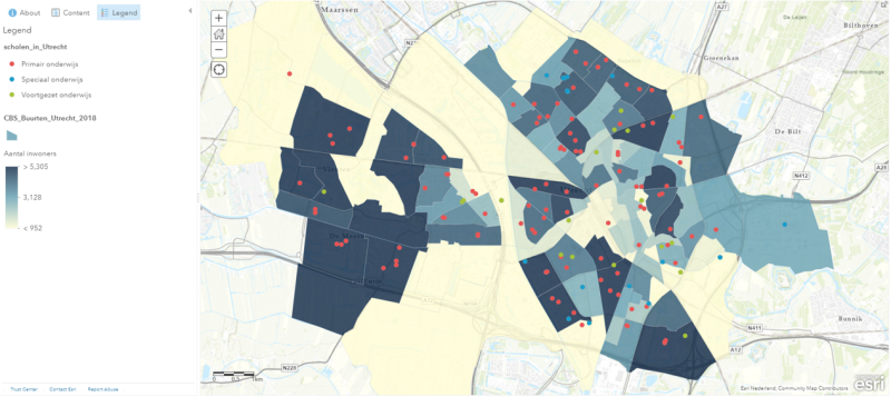Een snelle analyse, gebruikmakend van ArcGIS Online en de daar beschikbare data, brengt ons op het volgende voor Utrecht: