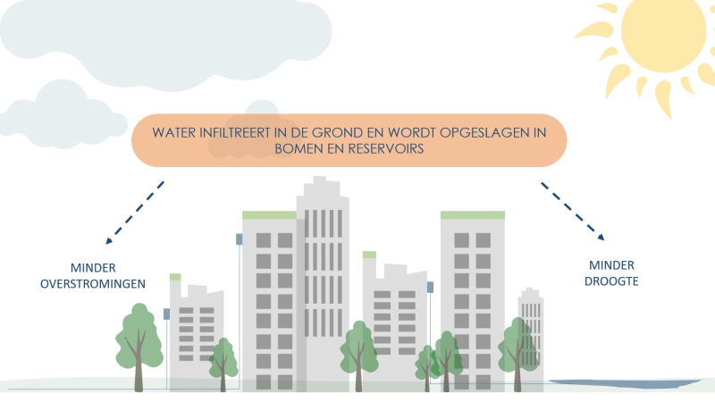 Mijn animatie heeft een educatief doel: het informeren van de burger over de oorzaken van overstromingen en droogte in stedelijke gebieden. Maar daarnaast ook wat er gedaan kan worden om dit te voorkomen, namelijk groene daken aanleggen, bomen planten en water opslaan.