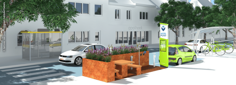 Qua mobility hubs is Europa al goed opweg, er zijn namelijk ook samenwerkingen tussen het bedrijf Autodelen.nl en Mpact om in de regio Vlaanderen Mobipunten te bouwen (zie afbeelding hierboven).